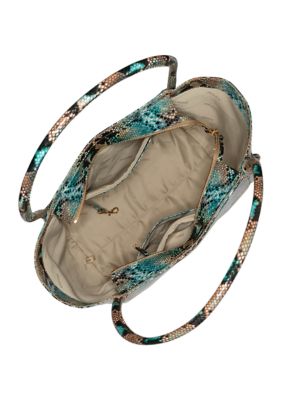 This crossbody in turquoise snake pattern is so amazing. BRAHMIN Teal Turquoise CARMELA XL Leather Tote Bag PursePre-Owned NICE DescriptionTeal turquoise 203244651333. Featured in Turquoise Tiete Snake an exotic tri-texture featuring bronzed metallic aqua lizard-embossed Italian leather mini croc-embossed chino and tobacco Italian suede trim.