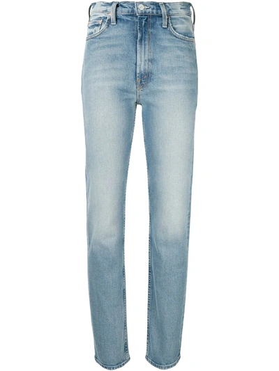 Blue cotton blend Cowboys Dont Cry straight jeans from Mother featuring a waistband with belt loops whiskering at the thigh a button and zip fly a faded effect a. Mother Superior Jeans The Dazzler in Cowboys Dont Cry Wash - size 25 Whiskering and fading.